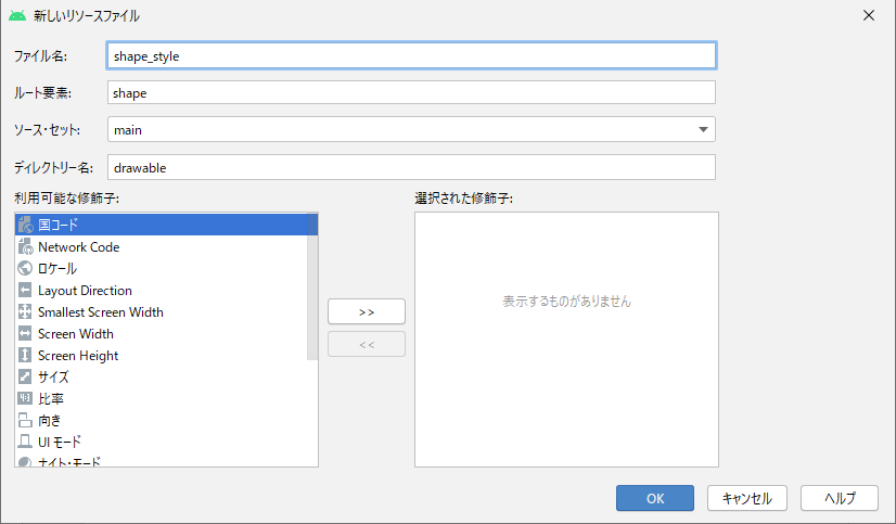 まずは下図にあるようにdrawableディレクトリ直下にxmlファイルを作成していきます。